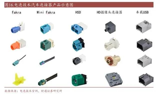 电连技术是国内车载高频高速连接器龙头企业,主要产品包括 Fakra 系列、HSD 系列板端&线端、HD 系列、HSL 以及车载 USB 系列。