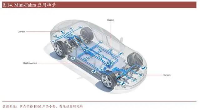 另外,Fakra 由于数据传输量小、体积大及传输协议有等原因将逐步被 Mini-Fakra 取代,价值量更高、应用范围更广的 Mini-Fakra 连接器将成为行业内主流,以罗森博格的 Mini-Fakra 产品系列 HFM 为例,在高达 20GHz 的频率下,可以完成最大 28Gbps 的传输速率,并且相较于传统 Fakra 连接器,Mini-Fakra 的体积缩小了 80%。