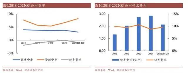 公司研发费率始终保持在 8%-10%之间,随着公司规模扩大研发投入逐渐增加,研发费用自 2018 年的 1.33 亿元上升到 2021 年的 2.85 亿元,2022 年前三季度研发投入 2.13 亿元。