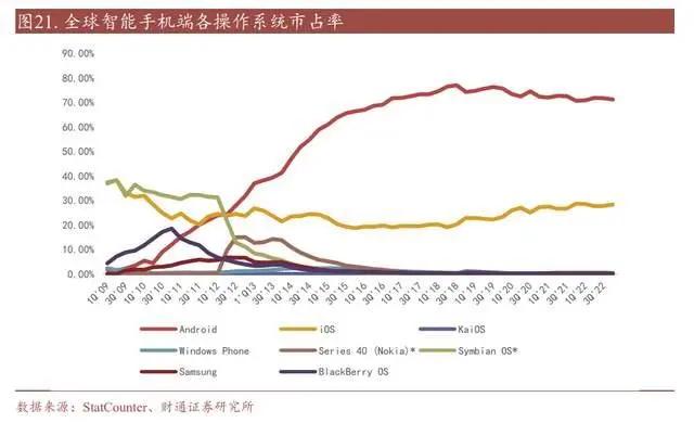 3.1.1 智能手机:行业发展进入成熟阶段,安卓市占率稳定在 70%