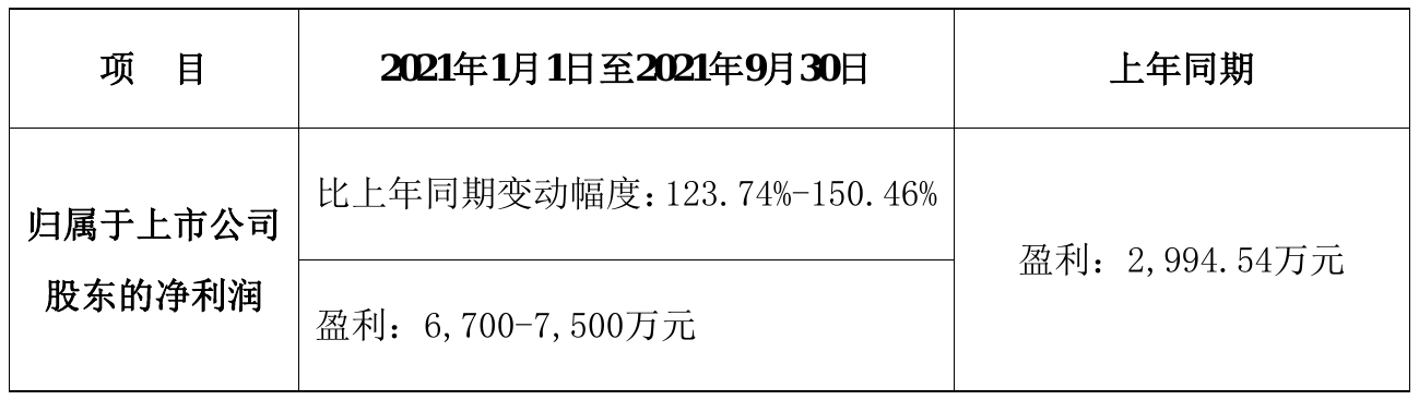 挖贝网10月11日,隆盛科技(300680)近日发布2021年前三季度业绩预告公告,预计2021年前三季度实现归属于上市公司股东的净利润为6700万元–7500万元,比上年同期增加123.74%–150.46%。