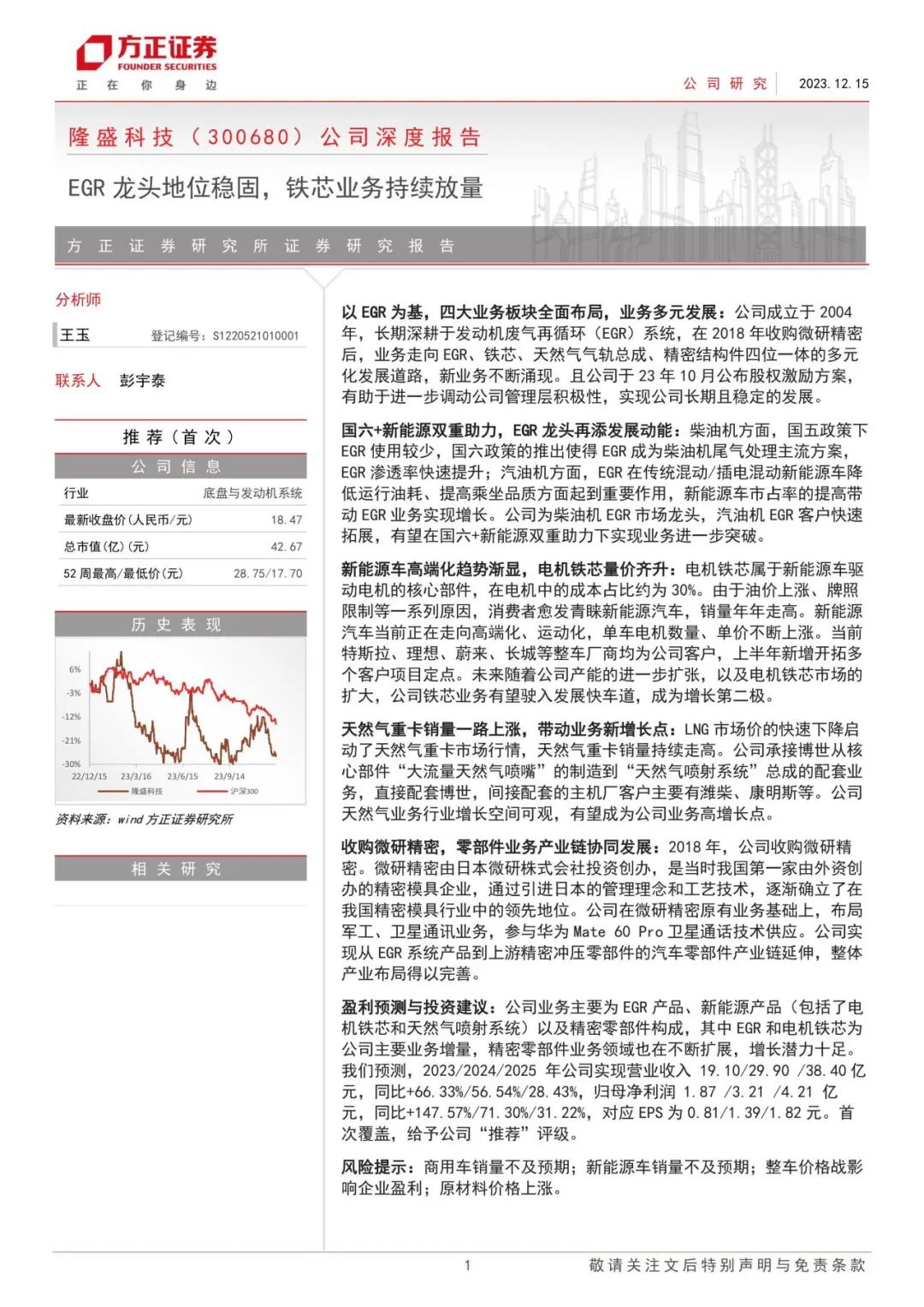 以上为报告部分内容,完整报告请查看《隆盛科技(300680):EGR龙头地位稳固,铁芯业务持续放量》。
