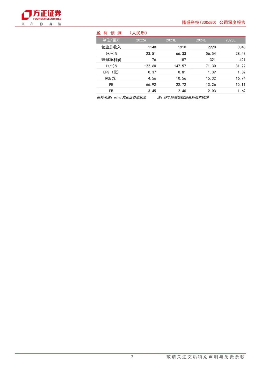 盈利预测与投资建议:我们预测,2023/2024/2025年公司实现营业收入19.10/29.90/38.40亿元,同比+66.33%/56.54%/28.43%,归母净利润1.87/3.21/4.21亿元,同比+147.57%/71.30%/31.22%,对应EPS为0.81/1.39/1.82元。首次覆盖,给予公司“推荐”评级。