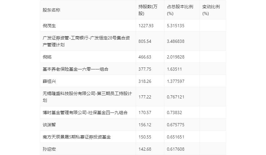 一季报显示,2024年一季度末的公司十大流通股东中,新进股东为谈渊智、南方天辰景晟5期私募证券投资基金,取代了上年末的浦银安盛品质优选混合型证券投资基金、博时主题行业混合型证券投资基金(LOF)。在具体持股比例上,基本养老保险基金一六零一一组合、薛祖兴持股有所上升。