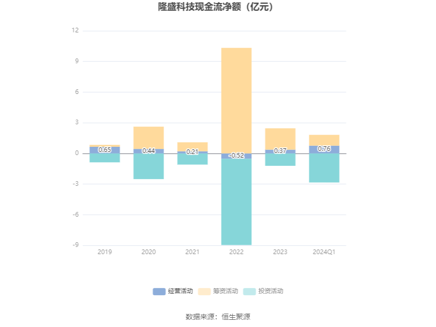 2024年第一季度,公司经营活动现金流净额为7573.57万元,同比增长93.09%;筹资活动现金流净额1.06亿元,同比增加2093.88万元;投资活动现金流净额-2.84亿元,上年同期为-1.38亿元。