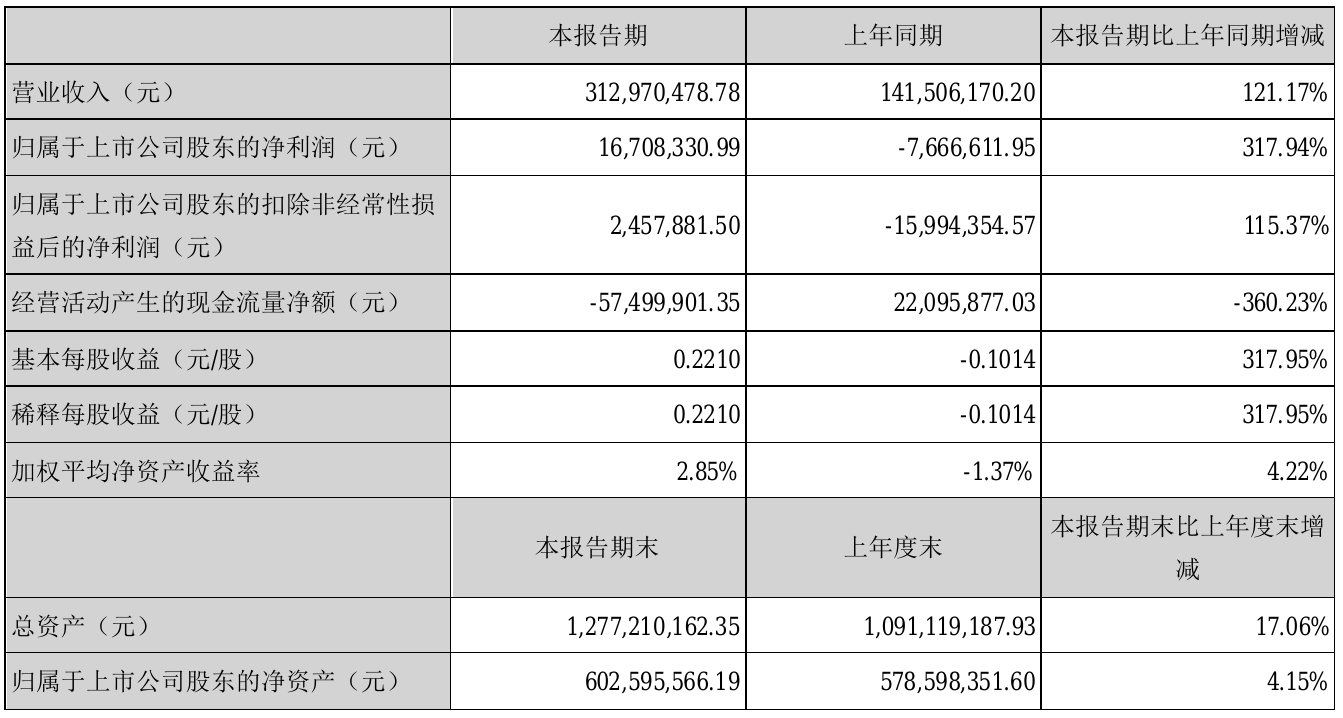 8月16日,英搏尔(300681)近日发布2021年半年度报告,报告期内营业收入312,970,478.78元,同比增加121.17%;净利16,708,330.99元,同比扭亏为盈。