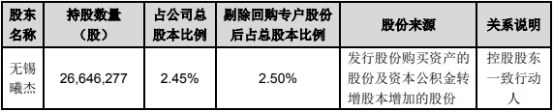 公司控股股东一致行动人无锡曦杰智诚投资合伙企业(有限合伙)(以下简称“无锡曦杰”)持有公司股份2664.6277万股,占公司总股本的比例为2.45%(剔除公司回购专用账户中的股份数量后,占公司总股本比例为2.50%),现计划在减持计划预披露公告发布之日起15个交易日后的3个月内(即2025年2月13日至2025年5月12日期间),以大宗交易或集中竞价的方式减持其持有的公司股份不超过1,066.25万股,即不超过公司总股本比例1.00%。