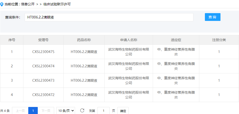 中国.武汉,2023年10月9日——武汉海特生物制药股份有限公司自主研发的1类治疗用生物制品新药:HT006.2.2滴眼液临床试验申请(IND)已获国家药品监督管理局(NMPA)批准。HT006.2.2滴眼液靶向作用于原肌球蛋白受体激酶A和p75神经营养因子受体,临床拟用于中、重度神经营养性角膜炎治疗。