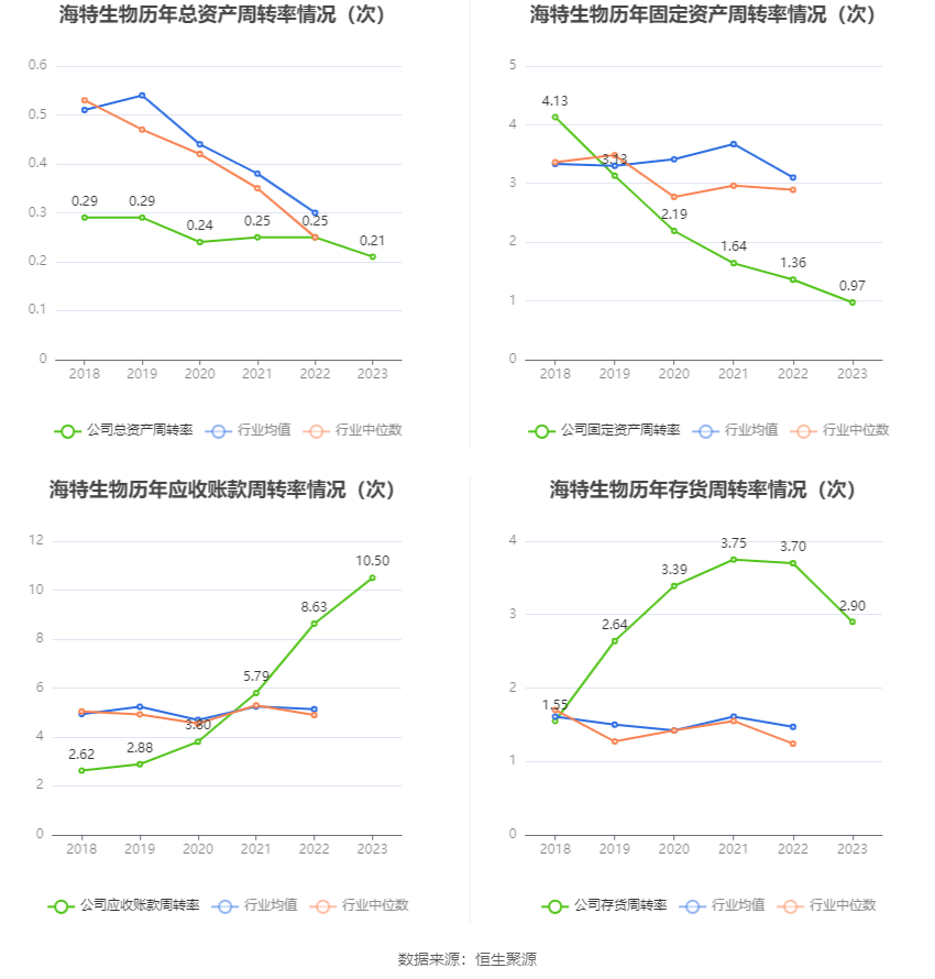 数据统计显示,海特生物近三年营业总收入复合增长率为4.74%,在其他生物制品行业已披露2023年数据的18家公司中排名第15。近三年净利润复合年增长率为-241.41%,排名18/18。