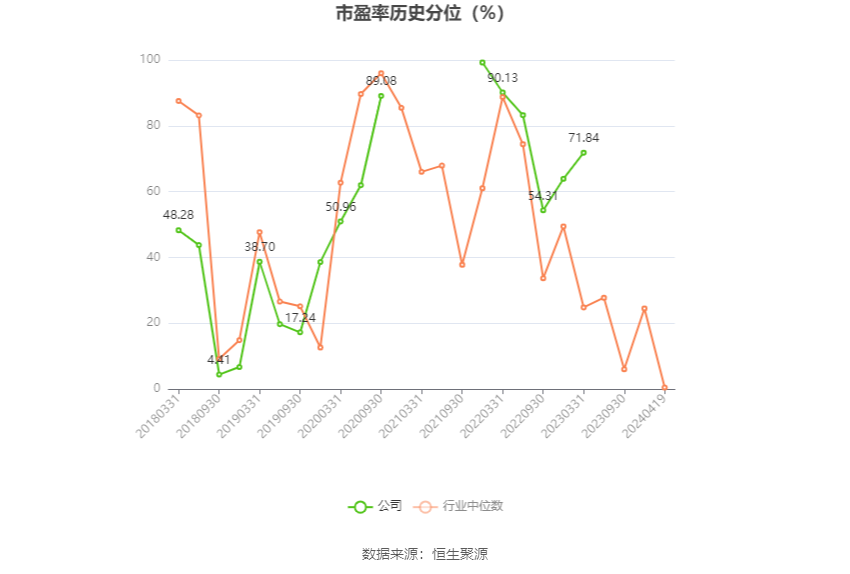 市盈率为负时,不显示当期分位数,会导致折线图中断。