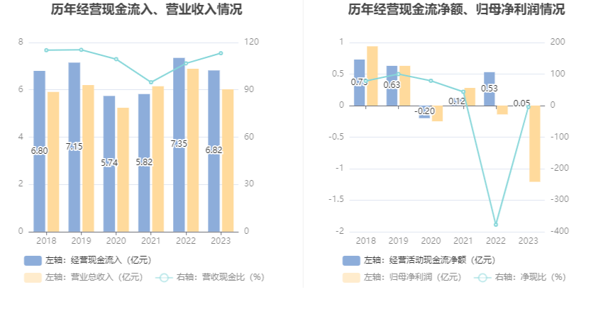 2023年,公司营业收入现金比为113.22%,净现比为-4.40%。