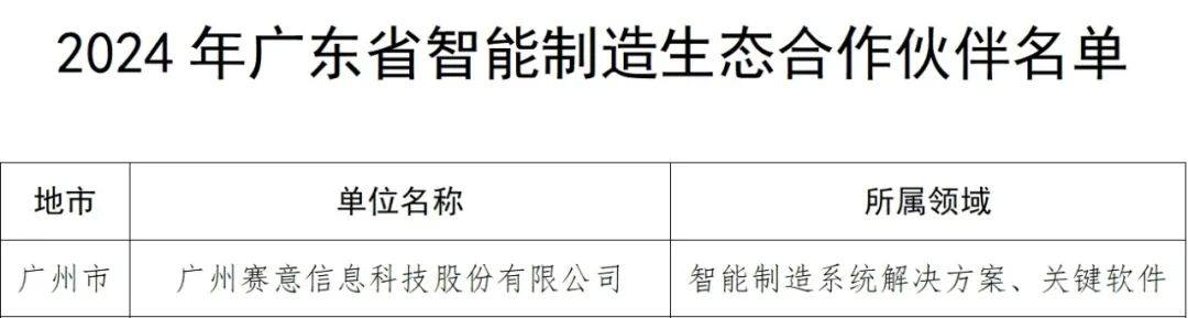 经专家评审,赛意信息凭借其在智能制造解决方案领域和核心关键软件的出色表现成功入选2024年广东省智能制造生态合作伙伴名单。赛意信息在智能制造领域,正以创新和专业引领着行业发展,是本次入选名单中唯一一家能够在其所属领域同时涵盖智能制造系统解决方案和关键软件两大关键领域的生态合作伙伴,充分体现了赛意信息在智能制造领域的创新引领实力。