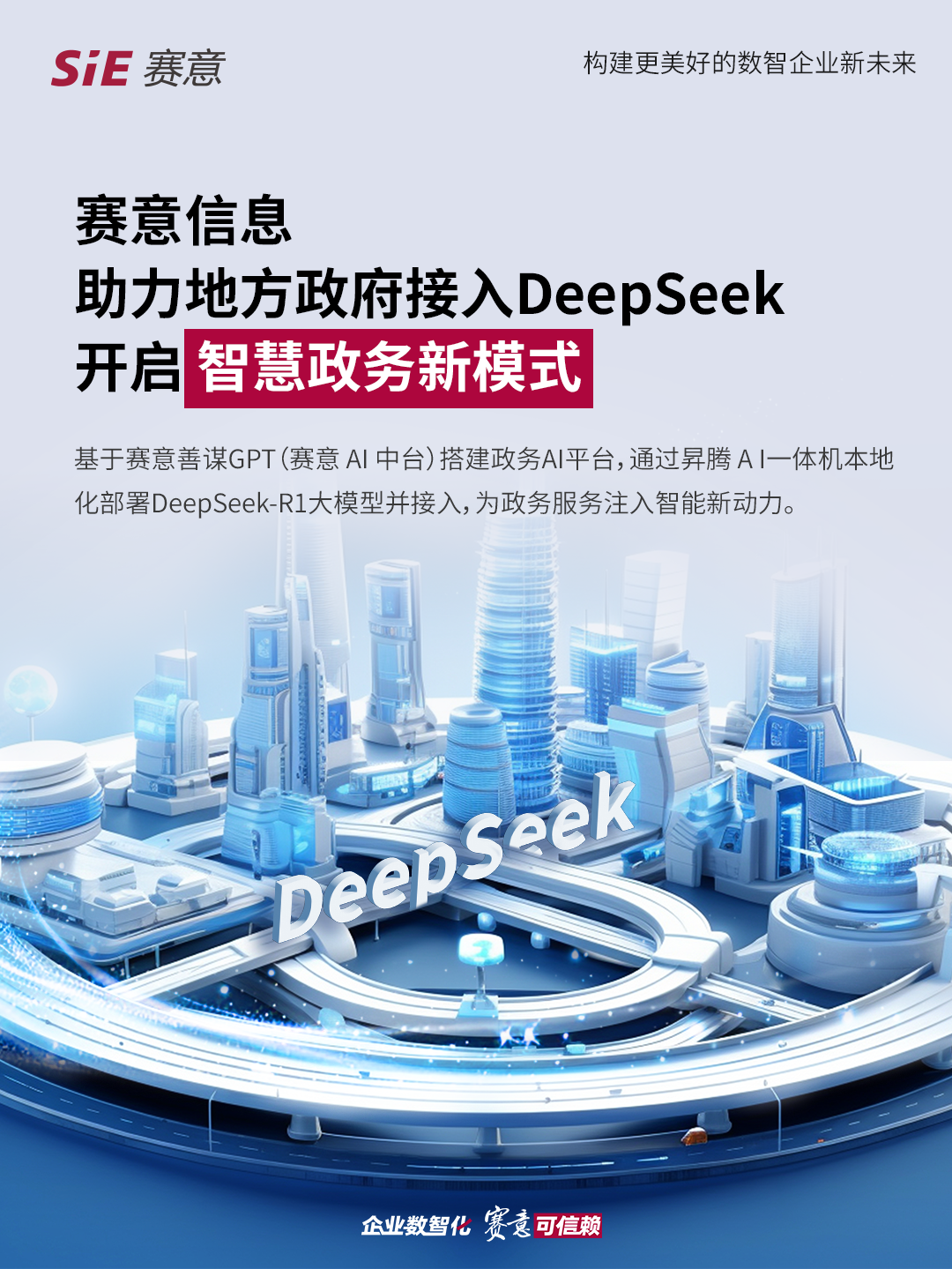 2025年,人工智能技术正以前所未有的速度重塑政务服务模式。从中央到地方,“数字政府”建设成为推动治理能力现代化的核心抓手。近日,赛意信息成功助力地方政府完成基于昇腾AI一体机DeepSeek-R1大模型本地化部署。这一行动不仅是对国家“人工智能+千行百业”战略的积极响应,更标志着政府运行效率与服务质量的双重飞跃。