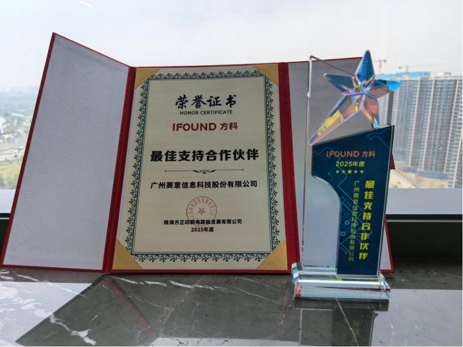 近日,赛意信息荣获战略合作伙伴——珠海方正印刷电路板发展有限公司(以下简称“方科PCB”)授予的“2025年度最佳支持合作伙伴”奖。该奖项不仅是对赛意信息在项目交付中专业能力与响应速度的高度认可,更体现了双方多年来在互信基础上持续深化合作、共创价值的坚定同行。