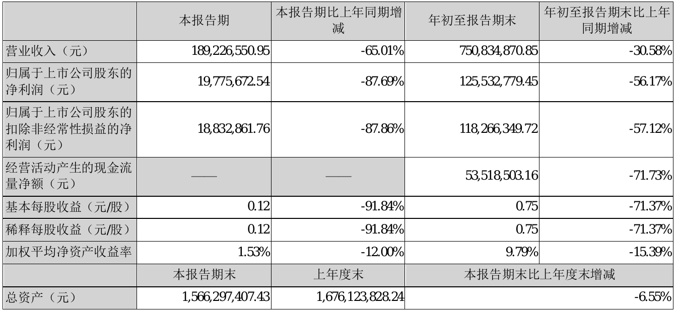 10月26日,双一科技(300690)近日发布2021年前三季度报告,报告期内营业收入750,834,870.85元,同比减少30.58%;净利125,532,779.45元,同比净利减少56.17%。