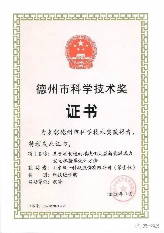 金秋九月,丹桂飘香,山东双一科技股份有限公司在社会各界朋友的关注和全体家人的共同努力中,不断优化内部管理体系,提高质量管控水平,确保产品品质,不断提升企业竞争力,取得了分体式智能化风力发电叶片模具技术成果荣获山东省2022年度职工创新创效竞赛二等奖和德州市职工创新创效竞赛一等奖,公司入围山东省2023年民营企业创新潜力100强名单,入选2023年省级服务型制造业示范企业名单等一系列成绩,并在激烈的市场竞争中,不断拓展业务领域,积极探索多种合作模式,满足客户定制化需求,提升产品附加值,寻求新的市场机会,建立稳定的长期合作关系,使公司在市场中取得竞争优势,实现可持续增长。