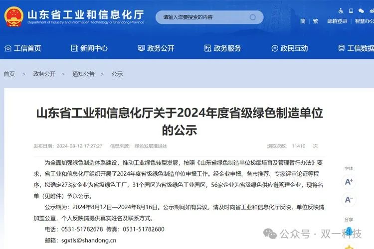 2024年8月21日,山东双一科技股份有限公司被省工信厅认定为山东省绿色工厂