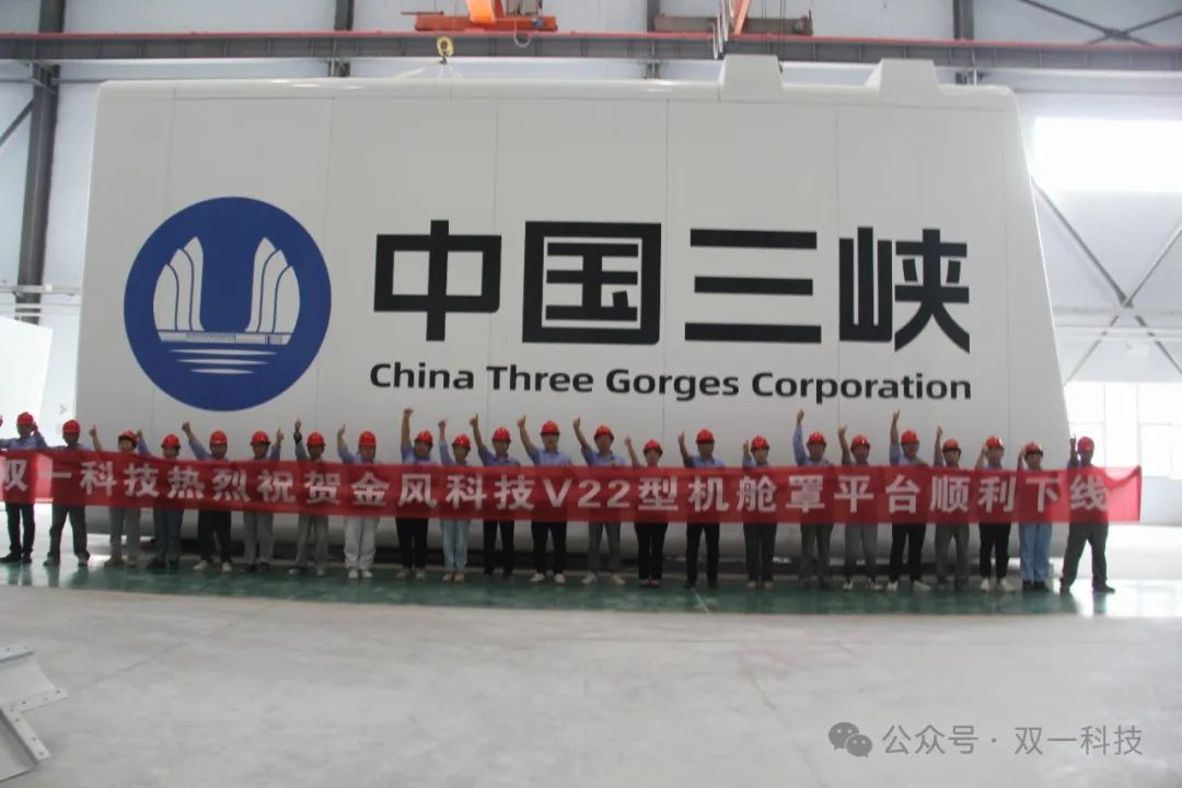2024年9月1日,山东双一科技股份有限公司为金风科技生产的V22型25MW海上风电机舱罩平台顺利下线
