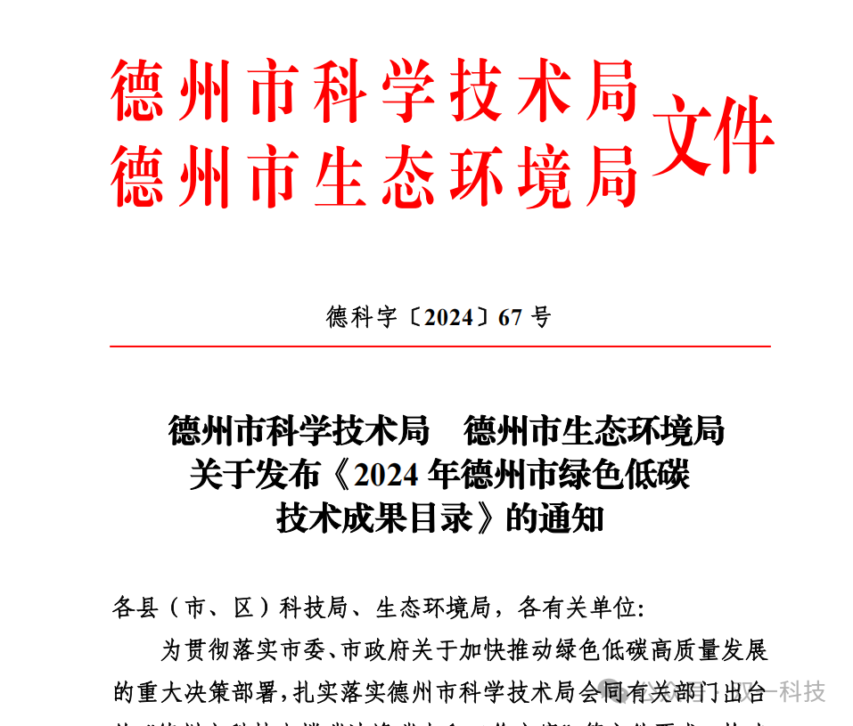 2024年7月9,山东双一科技股份有限公司车辆轻量化部件被列入德州市绿色低碳技术成果目录