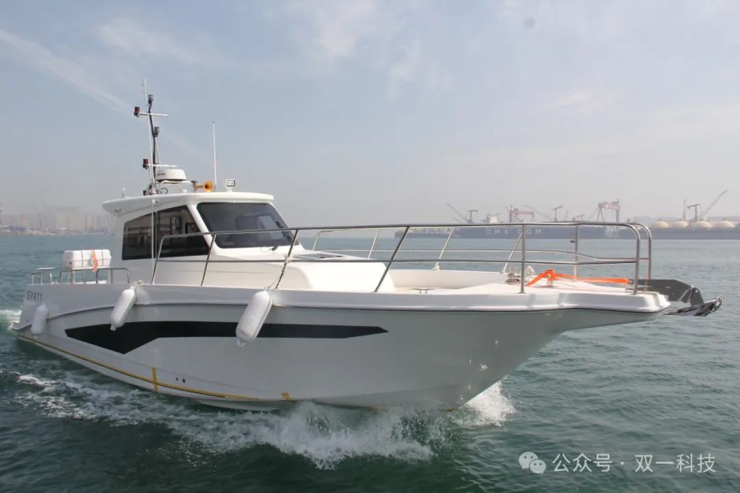 411款游艇作为II类游艇,不仅给予用户更宽广的航行范围,还提供了更好的海上出行体验。从外观上看,船身线条流畅,造型时尚,外形美观,充满运动感;从细节上看,设置宽敞的甲板空间,设置多个储物箱,方便多人深海垂钓,内部更是设置了独立卫生间以及休息舱,整体布局合理,能够满足多人海上出行需求,并且还可以为用户的定制化需求进行设计优化,每项功能都体现了双一游艇的制造实力与对品质和细节的把控。正是双一游艇的整体实力以及细节的打磨,让这款游艇在市场上脱颖而出,赢得了客户的青睐。