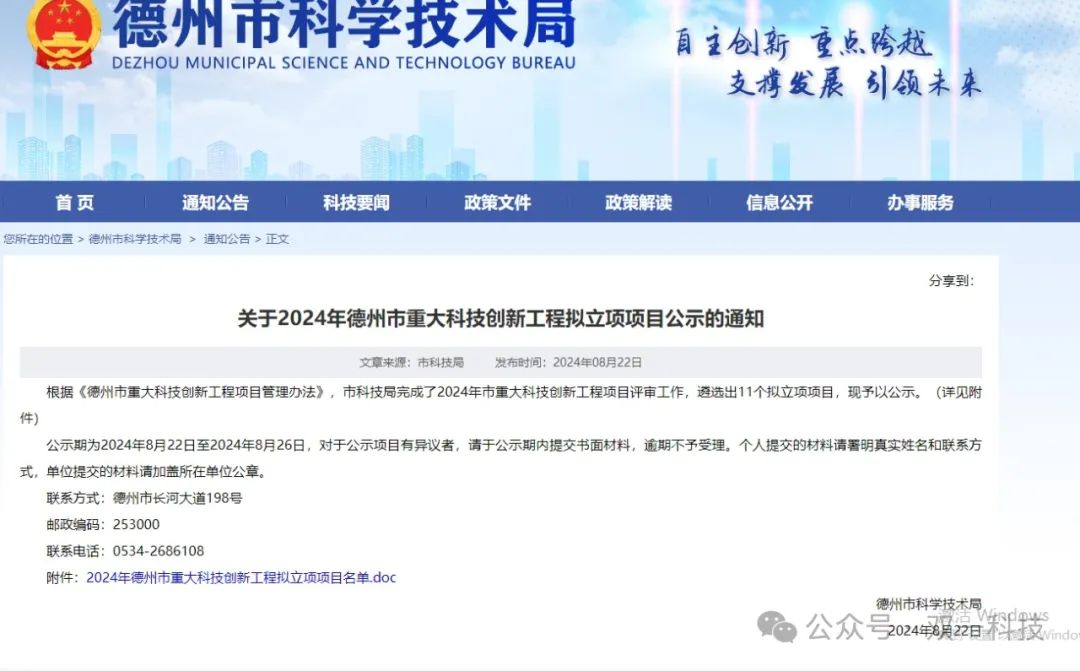 2024年8月22 山东双一科技股份有限公司连续碳纤维增强PEEK基复合材料增材制造技术研发与应用项目被列入德州市重大科技创新工程项目