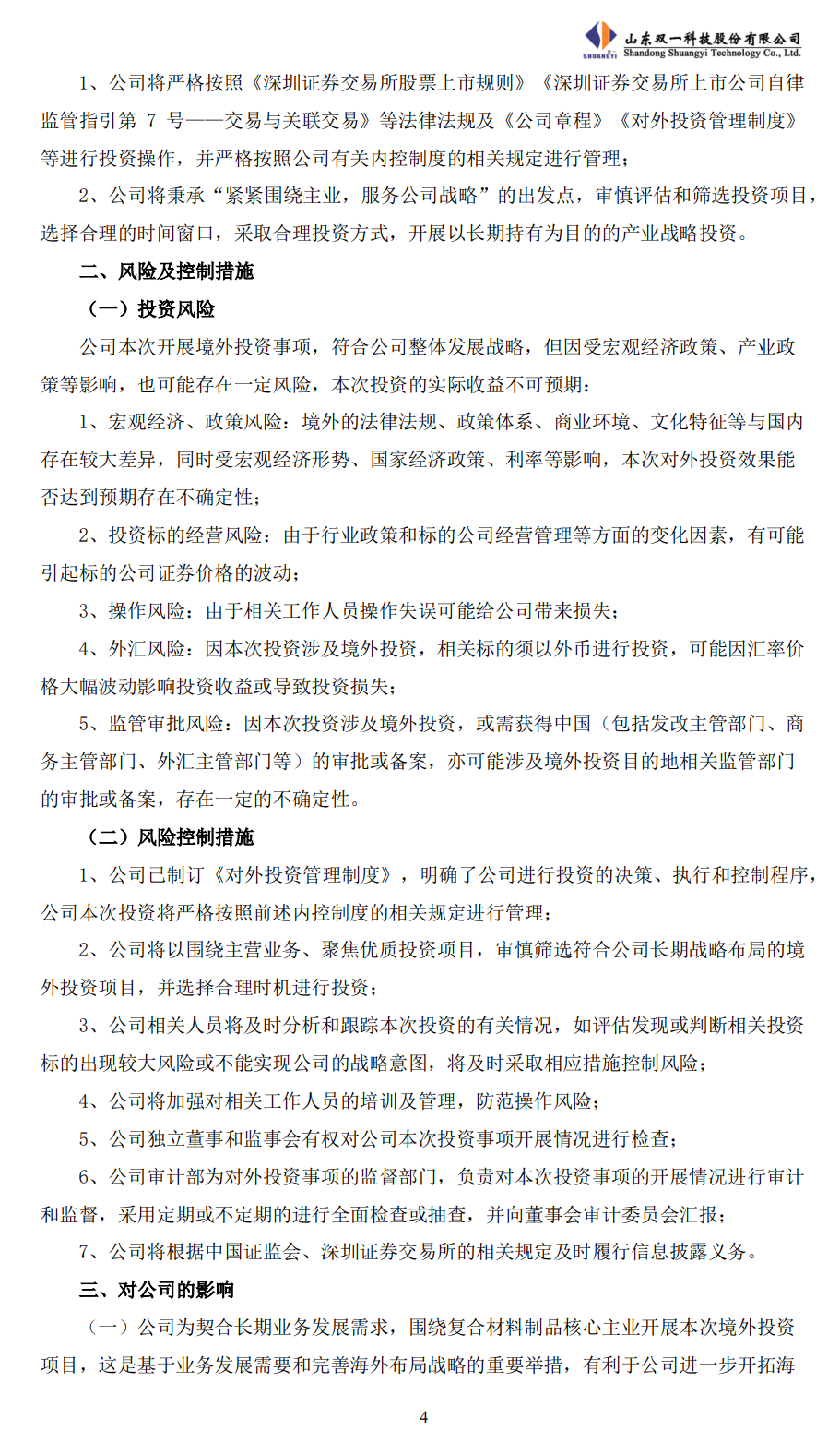 投资目的:复合材料制品因其高强度、轻质及耐腐蚀特性,广泛应用于风电、轨道交通、工程机械及低空经济等领域,国际市场潜在需求旺盛。公司作为复合材料制品生产的先进企业,为强化全球供应链能力、优化海外战略布局并结合国际客户的需求,拟围绕主业,通过境外投资进一步拓展国际市场,提升综合竞争力。