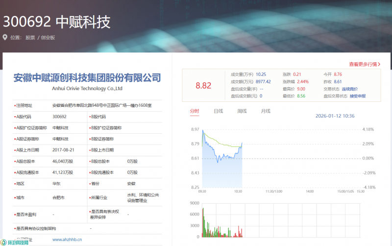公司中文名称由“安徽中环环保科技股份有限公司”变更为“安徽中赋源创科技集团股份有限公司”,英文名称由“AnhuiZhonghuan Environmental Protection Technology Co.,Ltd”变更为“Anhui Orivie Technology Co.,Ltd”。公司证券简称由“中环环保”变更为“中赋科技”,启用时间为2026年1月12日(星期一)。公司证券代码“300692”保持不变。