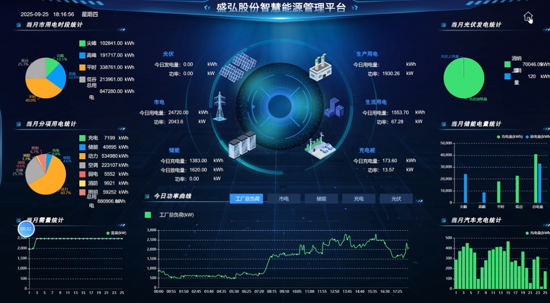 目前,盛弘充电站智慧能源解决方案已在盛弘惠州制造中心、华东运营中心等多个园区实现成功部署并稳定运行。以惠州制造中心为例,该方案成功将光储充负荷与生产负荷联动,实现了新能源本地最大消纳与需量控制。并通过谷充峰放策略,节省站内电费支出,实现了经济效益与电网友好的双赢。