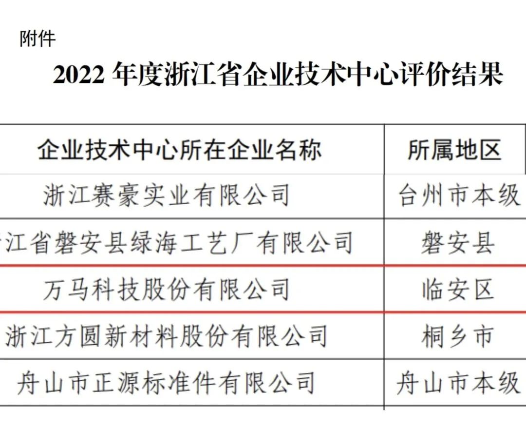 3月,浙江省经济和信息化厅公布2022年度浙江省企业技术中心评价结果,万马科技顺利通过评审。