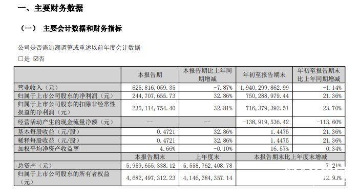 威海光威复合材料股份有限公司(简称光威复材)近日发布2022年第三季度报告称,前三季度公司实现营业收入约19.40亿元,同比下降1.14%,实现归属于上市公司股东净利润约7.50 亿元,同比增长 21.36%。其中,第三季度实现归属于上市公司股东净利润2.45亿元,同比增长32.86%。
