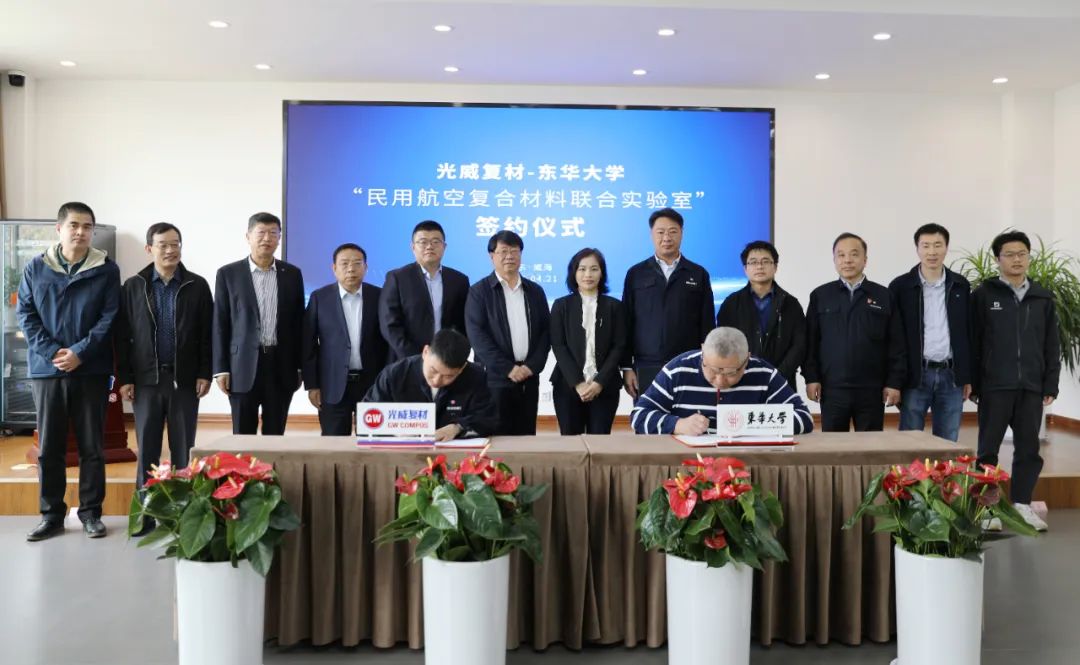 4月21日,威海光威复合材料股份有限公司与东华大学共建“民用航空复合材料联合实验室”签约仪式举行。高新区党工委书记、管委会主任梅延良,东华大学民用航空复合材料协同创新中心主任、教授陈春海,威海光威集团有限责任公司董事长陈亮,威海光威复合材料股份有限公司董事长卢钊钧等出席仪式。梅延良、陈亮、陈春海先后致辞。