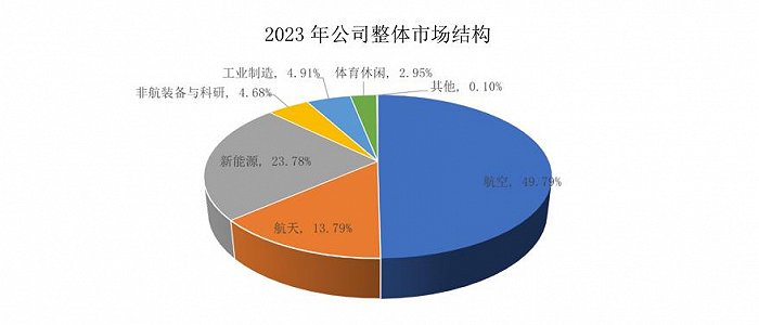 而包括风电、氢能、光伏在内的新能源业务贡献销售收入5.99亿元,占公司业务的23.78%,同比下降21.91%;非航装备和科研业务贡献销售收入1.18亿元,同比下降24.24%;包括工业制造、体育休闲等其他业务合计贡献销售收入2.00亿元,同比下降33.14%。