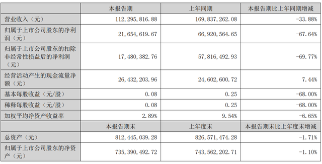 8月25日,森霸传感披露2022年半年度报告。报告期内,公司实现营业收入1.12亿元,同比下降33.88%,实现归属于上市公司股东的净利润2165万元,同比下降67.64%,实现归属于上市公司股东的扣除非经常性损益后的净利润1748万元,同比下降69.77%,基本每股收益0.08元。