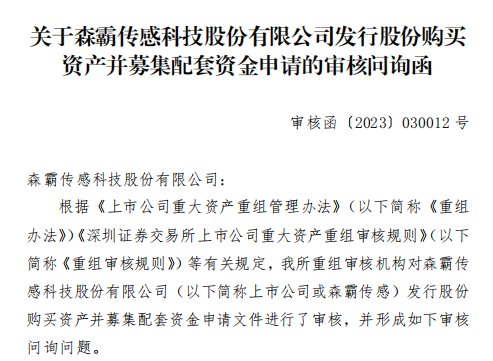 日前,森霸传感因资产重组事项再收深交所问询函,要求就标的资产主营业务、毛利率变化、应收账款等问题作出说明。