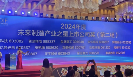 论坛期间“未来制造产业之星”上市公司榜单正式对外发布。森霸传感凭借多年的稳健经营、诚信治理获评“2024年度未来制造产业之星上市公司”,公司副总经理、董事会秘书邹洋先生受邀出席,并代表上市公司领取奖项。