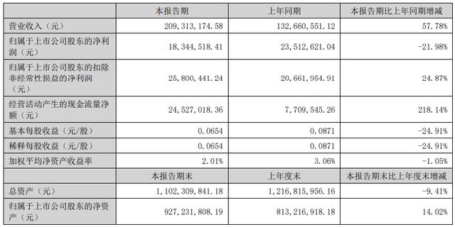 报告显示,森霸传感上半年实现营收2.09亿元,同比增长57.78%;归属于上市公司股东的净利润1834.45万元,同比下降21.98%,归属于上市公司股东的扣除非经常性损益的净利润2580.04万元,同比上升24.87%。基本每股收益0.0654元,同比下降24.91%。森霸传感利润分配预案为:以282735119为基数,向全体股东每10股派发现金红利0.35元(含税),送红股0股(含税),不以公积金转增股本。