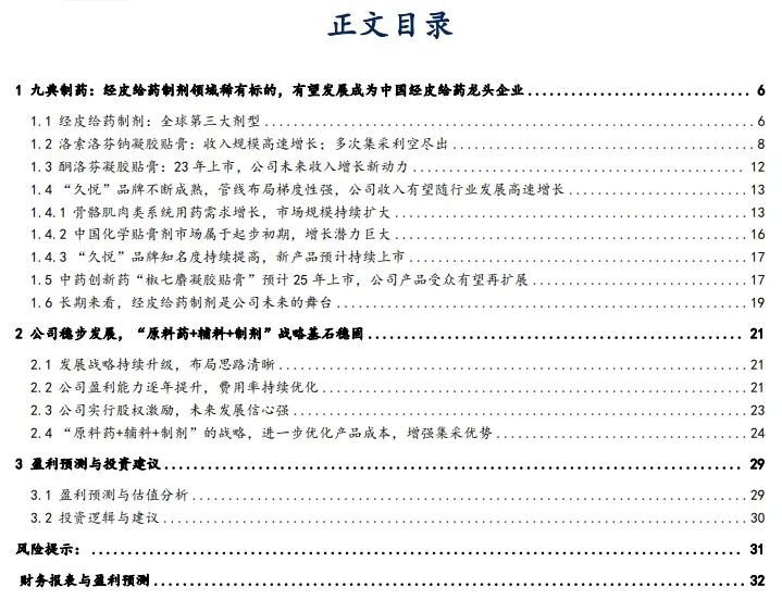 九典制药:经皮给药制剂领域稀有标的,有望发展成为中国经皮给药龙头企业