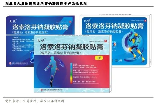 洛索洛芬钠凝胶贴膏是九典制药首款仿制上市的经皮给药制剂,是独家医保剂型,主要用于骨性关节炎、肌肉疼痛以及创伤引起的肿胀、疼痛等骨骼肌肉疾病。