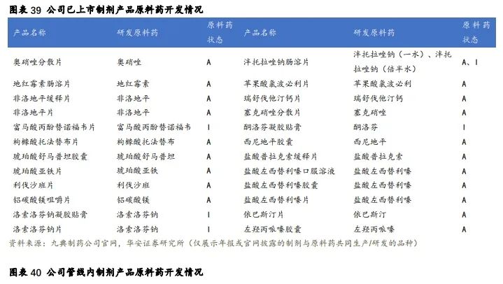 公司具备“原料药+辅料+制剂”完整产业链。截止 2023 年 6 月底,公司已取得 116 个制剂品种的批准文号,完成了 78 个原料药品种的备案登记,81 个药用辅料批文的备案登记。公司一直注重原料药的工艺优化和设备改进,形成了独特的原料药生产技术及生产的精细化管理模式。公司主要制剂产品部分使用自产的原料药、药用辅料生产,部分原料药、药用辅料正在研发中,从源头上确保了制剂品质的高标准和一致性,同时可以保证原料药供应稳定,不受制于上游原料药厂家,更不会形成主导制剂产品原料药被其他企业垄断的局面。公司逐步形成原料药、药用辅料自产的局面,使得公司制剂产品相比国内同类产品更具成本优势。