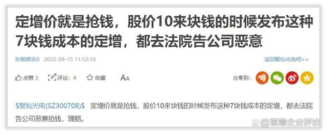 与券商的看法相反,多数投资者在股吧表达了对本次定增的反对声音,不少投资者认为是公司低价定增,会损害投资者利益。