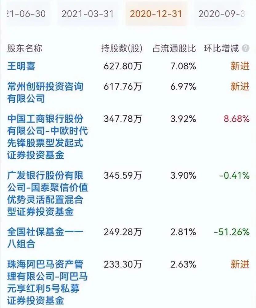 再看另一家私募,在2020年四季度末,阿巴马元享红利5号私募证券投资基金新进为第六大流通股东,持股比例为233.3万股,持股比例为2.63%。彼时,该机构持股成本在31.73元以上。