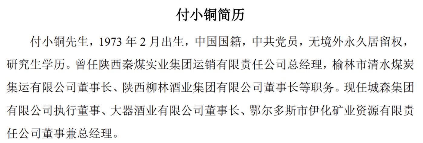 资本市场熟知付小铜,既因其在 金种子酒 (600199.SH)、 龙大肉食 (002726.SZ)、 利民股份 (002734.SZ)等多家上市公司的高调亮相和资本动作,也得益于其背后付氏家族的深厚资本底蕴,其家族以陕西秦煤实业(集团)有限责任公司为核心,发迹于陕西煤炭产业,借着行业风口积累了庞大的生意网络与资源。而作为凤香型白酒代表之一的 陕西柳林酒业集团有限公司 (下称“柳林酒业”),正是付小铜旗下最核心的资产,该酒业2018年由秦煤实业集团全资收购后,付小铜主导运作。