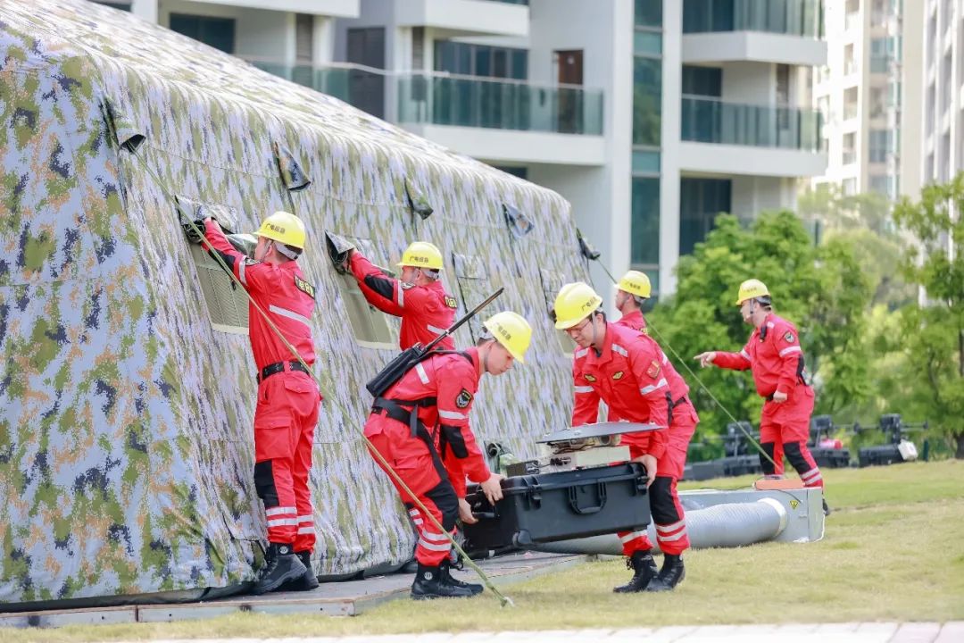本次演练是2023年广州市“应急演练季”活动的示范演练,共设置市现场指挥部开设、无人机应急救援、水上搜救、直升机空中救援、危险化学品事故堵漏、地下车库排水、森林火灾处置等七个科目。广哈通信携应急前指一体机(三屏)、卫星平板便携站、Mesh自组网电台、高清图传终端等装备参与演练,圆满完成应急通信保障工作。