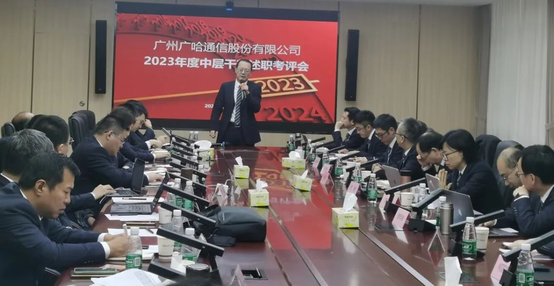 12月24日,广哈通信召开2023年度中层干部述职考评会,公司全体副职以上中层管理干部参加本次述职。公司党总支书记、董事长、总经理孙业全出席会议并讲话。党总支副书记、纪检委员胡中意,副总经理陈炜,党总支委员、副总经理张聚明、王勇,总经理助理谭维立出席会议。人力资源及行政部总监罗庸君主持会议。