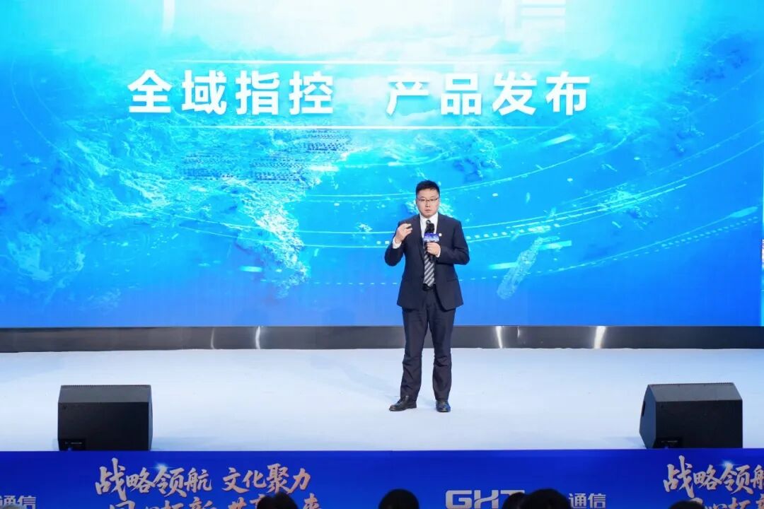 广哈通信国防信息通信首席运营官、广有通信党总支书记、总经理邓懿对前沿的全域指控系统(AC2)进行发布