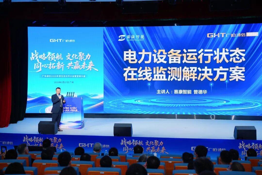 广哈通信电力智能运检首席技术专家、赛康智能副董事长、总经理曾德华作主题分享,针对电力设备运行状态在线监测领域进行了重点剖析,现场发布了最新的解决方案