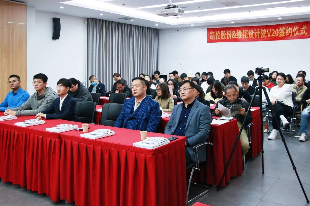 11月9日,江苏凯伦建材股份有限公司(以下简称凯伦股份)与北京维拓时代建筑设计股份有限公司(以下简称维拓设计)在维拓设计院举行V20签约仪式,维拓设计市场总监、V20创新产业联盟秘书长高子钤,凯伦股份北方营销中心总经理王红伟,副总经理曲守川,以及来自维拓设计的90位设计师现场参加了本次交流会议,凯伦股份总裁李忠人线上参与了会议交流。
