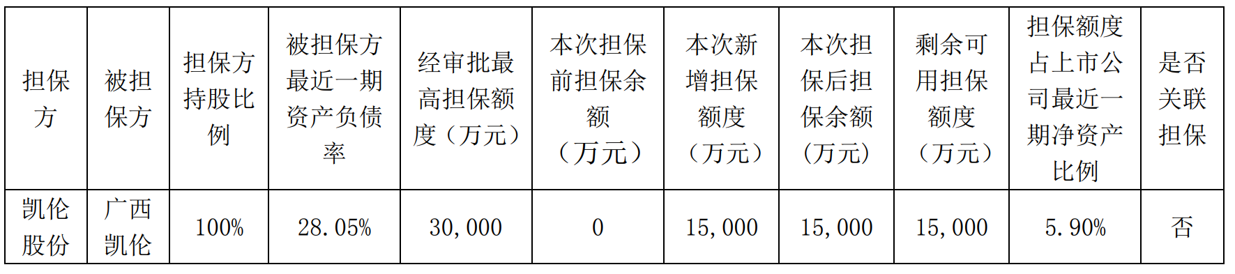 公告显示,凯伦股份第四届董事会第十六次会议和2021年年度股东大会审议通过了《关于为全资子公司提供担保的议案》,同意公司为全资子公司广西凯伦新材料有限公司(以下简称“广西凯伦”、“债务人”)提供总额不超过人民币3亿元的连带保证责任。