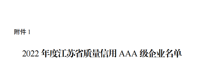 江苏省质量信用AAA级企业