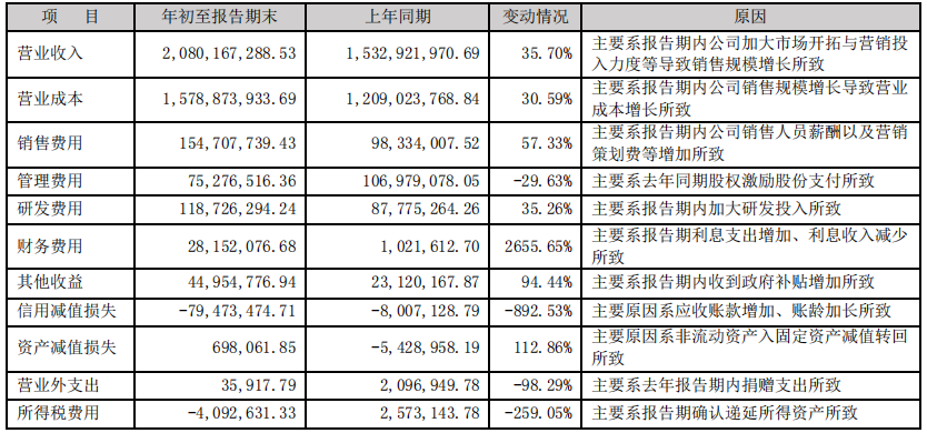 凯伦股份今年前三季度实现营业收入20.80亿元,同比增长35.70%;